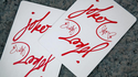 The cards feature an original Ace of Spades, Joker, Back Design, Box Design, Sticker Seal, and Ace of Hearts - renamed the Ace of Love. The box is striking, with vibrant red foil accents on premium, fine-linen paper.