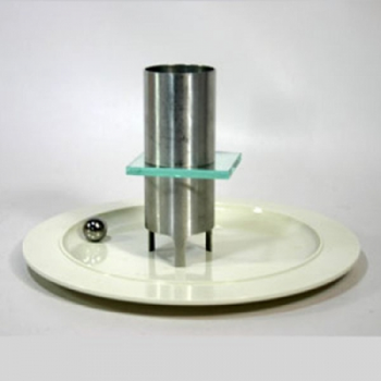 Ausstattung: Zwei hochglanzpolierte Aluminiumzylinder, von denen einer präpariert ist, eine Stahlkugel, sowie ein Keramikteller und eine Glasplatte. Die Requisiten sind in einer transportsicheren Schachtel mit Schaumstoffausfüllung verpackt.