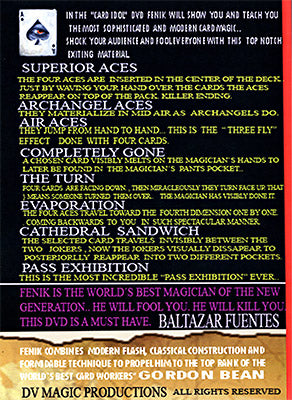In the "Card Idol" DVD Fenik will show you and teach you The Most Sophisticated and Modern Card Magic...Shock your audience and fool everyone with this top notch exiting material.