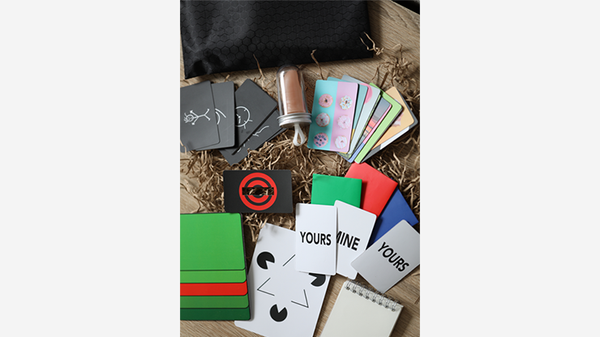 All the beautifully printed cards are contained within a specially designed holder to sit comfortably in your pocket. Also included is a top quality thumb-tip stored inside a clear holder with the loop (This can be used to hold your prediction as alternative to the social media revelation), some extra blank cards for the 'Nite-Sight' routine, which you can personalize in your own language, a Sharpie marker and an elegant spiral note pad.