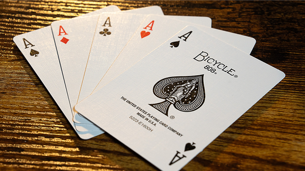 Four aces are displayed face up. One of the aces is freely selected by a spectator. The chosen ace is revealed to be "odd" because it's the only card with a RED back! ALL of the other backs are BLUE-backed!