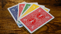 Now for the finale! The remaining two aces are turned over to show their backs are now YELLOW and GREEN!
