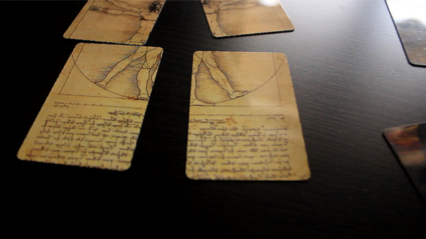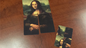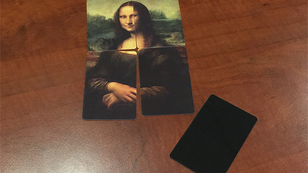 When the black cards are turned over, the spectator realizes that out of all the possibilities that he had; he ended up with the only possibility that makes the 4 pieces shape perfectly the Mona Lisa puzzle that was printed on the face of the cards.