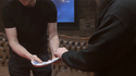 Your spectator removes the coin and turns over the card that is immediately underneath the coin -- their signed card!