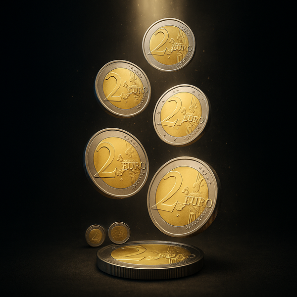 Vier Zwei-Eurostücke werden vorgezeigt.